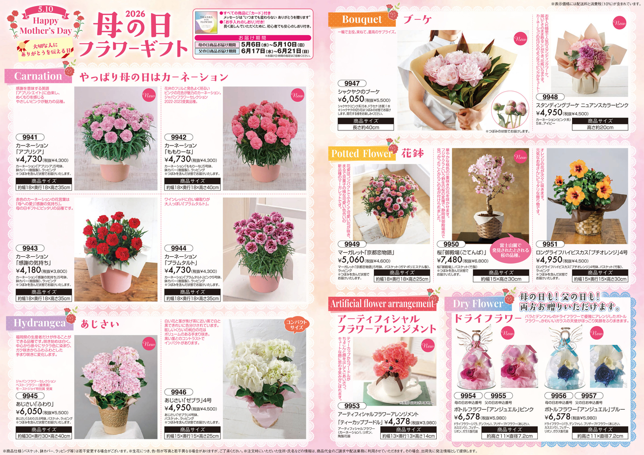 母の日ギフトお申込締切 2026年4月21日まで (父の日は5月22日まで)